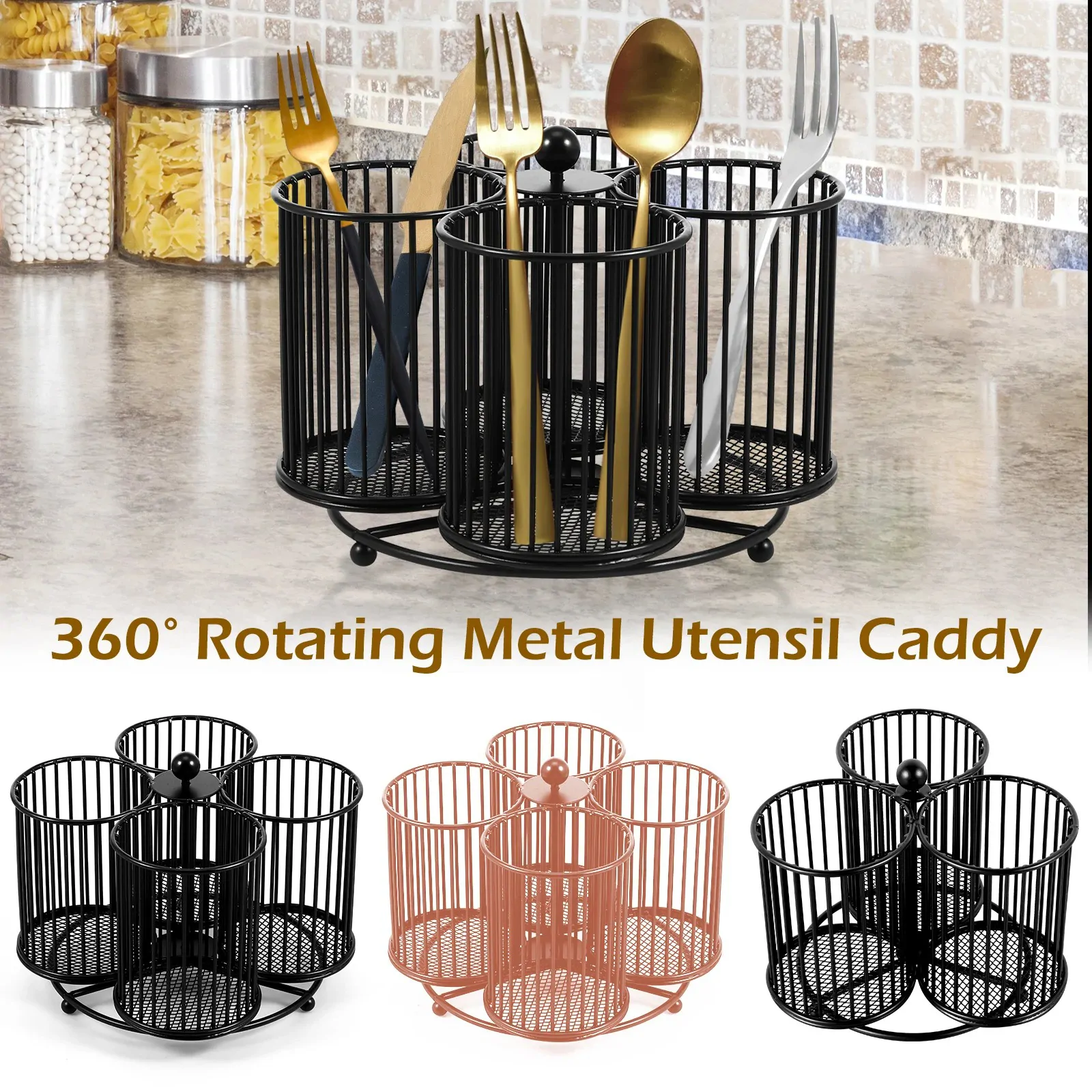 سلة تخزين أدوات مائدة معدنية